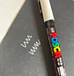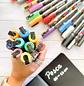 Marcadores Posca de colores vivos que se pueden ocupar incluso en colores negros u oscuros y sobre distintas superficies (como plástico, metal, vidrio, fotografías, espejos y madera).